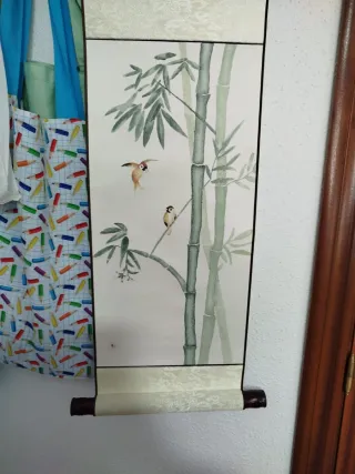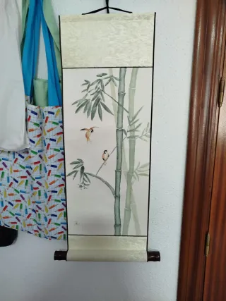 Kakemono pintado a mano. Medidas 71 x 33 cm Paisaje de estilo japonés pintado sobre papel y tela, perfecto para relajarte y decorar tu habitación de meditación, Dojo, sala de bonsáis o rincón Zen. Se enrolla como un pergamino si quieres guardarlo.