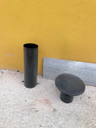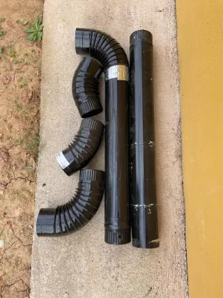 Conjunto de tubos metálicos para estufa. - Color negro. - Materiales metálicos y plásticos.