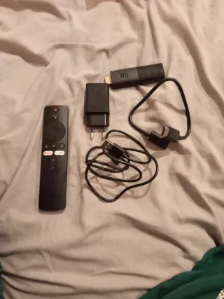 Dispositivo de streaming Mi TV Stick de Xiaomi. Permite convertir tu televisor en un Smart TV. - Incluye mando a distancia. - Incluye cargador de corriente. - Incluye cable de alimentación.