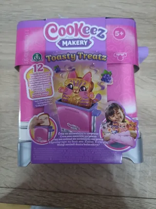 Juguete de la línea Cookeez Makery, modelo Toasty Treatz. Crea tu propia mascota sorpresa. - Incluye 12 peluches perfumados para coleccionar. - Edad recomendada: 5+ años.