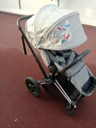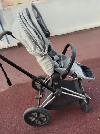 Carro de bebé Cybex en color gris, con un diseño moderno y detalles bordados en el capazo. - Capazo con bordados. - Ruedas todoterreno. - Asiento reclinable.