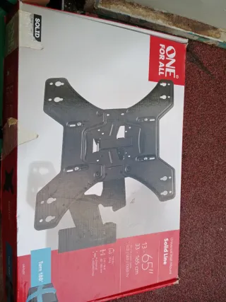 Soporte de pared universal para TV de la línea Solid de One For All. - Compatible con pantallas de 13 a 65 pulgadas (33-165 cm). - Soporta hasta 50 kg (110 lbs). - Compatible con VESA hasta 400x400 mm. - Permite girar 180°.