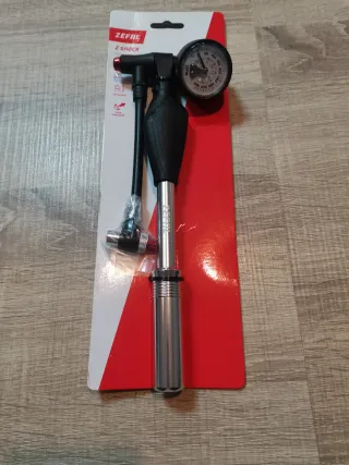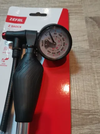 Hinchador de horquilla Zefal Z Shock con manómetro integrado para un control preciso de la presión. - Diseño compacto y ligero. - Cuerpo de aluminio. - Manguera flexible. - Cabezal universal.