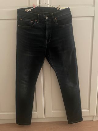Vaqueros Levi's modelo 512 Slim Taper en color azul oscuro. Corte ajustado que se estrecha desde la rodilla hasta el tobillo, talla 31 (40-42), largo 30, puesto solo 1 vez, vendo por no usar