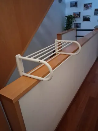 Práctico toallero con un diseño moderno. - Estructura de metal resistente. - Acabado en color blanco.