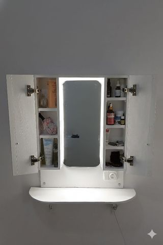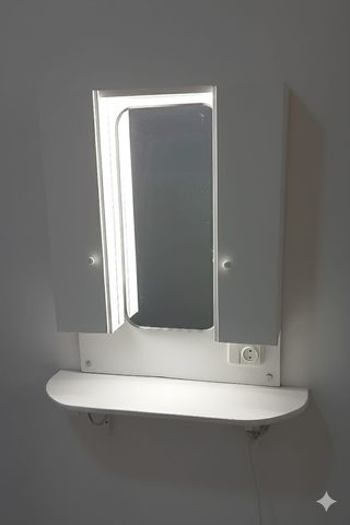 Tocador moderno con espejo y luz integrada, perfecto para habitaciones, pasillos o recibidores. Detalles del producto Tocador de habitacion para esacios pequeños o Botiquín de baño pasillos o recibior.. o baño, con espejo integrado y luz. Fabricado a mano " artesanal". Material, madera auténtica de abeto", lacado con pintura antihumedad. - Diseño moderno y funcional. - Acabado en blanco y detalles plateados. - Fabricado con materiales de calidad. - Diseño elegante y funcional - Repisa - Iluminación LED. - Estante inferior. - Enchufe integrado. Color Plateado y Blanco Material: Vidrio y Madera Medidas Anchura 60 cm Altura 80