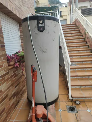 Acumulador de agua caliente para caldera. Unidades de almacenamiento de agua caliente sanitaria. - Capacidad de X litros (si se conoce). - Dimensiones aproximadas: Alto X cm, Diámetro X cm (si se conocen). - Conexiones estándar para instalación. - Diseño vertical.