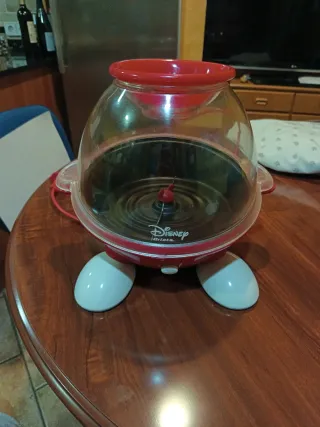 Máquina para hacer palomitas con diseño de Disney. - Color rojo y transparente. - Base con forma de patas. - Logo de Disney Ariete visible. Funciona sin aceite. Bol transparente de gran capacidad. Botón único de encendido.