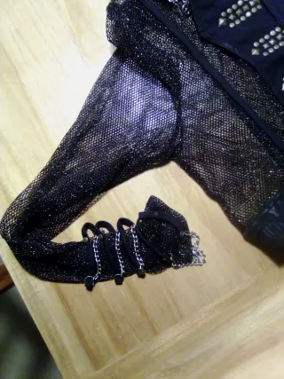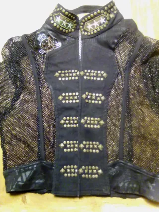 Chaqueta con detalles de red y tachas metálicas. - Diseño con cuello alto. - Adornos de tachas en la parte frontal y el cuello. - Mangas con tejido de red. Y cadenas de adorno.