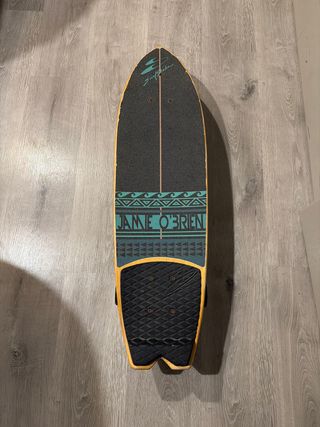 Skate Carver marca Surfskate, modelo Jamie O'Brien. Diseño inspirado en el surf. - Tabla con lija negra y diseño gráfico. - Tail en forma de cola de pez. - Base con textura antideslizante.