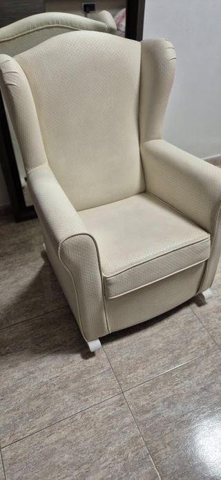 Este sillón de lactancia es perfecto para crear un espacio acogedor para ti y tu bebé. - Diseño balancín. - Tapizado blanco con grabado.