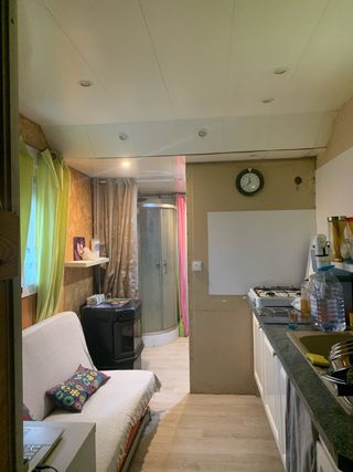 Camión adaptado para vivir, con instalación de paneles solares. - Paneles solares en el techo. - Chimenea exterior. - Ventana con persiana. electricidad mediante paneles solares, batteria lithium, todas las comodidades modernas, estufa de pellets, lavadora, nevera, sofa cama, un espacio de oficina en el dormitorio posibilidad cama solo y matrimonio etc.