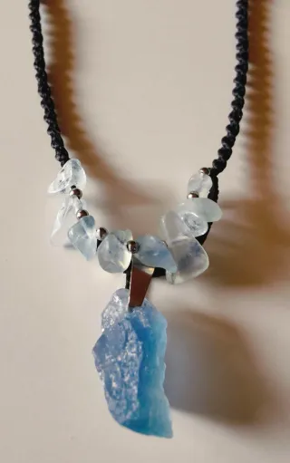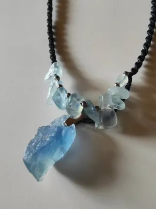 Collar artesanal con piedras de aguamarina en bruto y detalles plateados en acero - Cierre de macramé ajustable. - Piedras naturales de aguamarina. - Diseño único y bohemio Gastos de envío gratis a partir de 25 € Minerales aguamarina bruto gargantilla piedras naturales macramé boho hippie gótico bohemio choker pulseras cuarzo gemas naturales bruto ágata