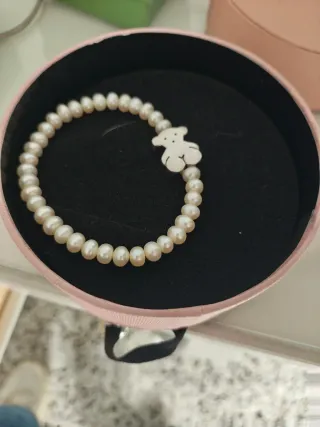 Bonita pulsera de perlas con un charm de osito. - Perlas de agua dulce. - Charm de osito blanco.