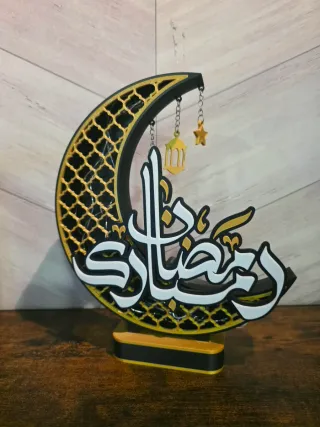 Este Ramadán, regala luz y tradición ✨🌙 Prepárate para recibir el mes sagrado con una pieza que une lo mejor del diseño moderno y la espiritualidad. Nuestra exclusiva luna creciente, impresa en 3D con acabados premium en negro y dorado, no es solo una decoración: es el alma de tus noches de Iftar. Su cálida iluminación LED integrada crea el ambiente perfecto para compartir en familia Dimensiones: Altura: 28cm Anchura: 24cm Fondo: 7cm *preguntar precio para adorno sin luz! #ramadan #marruecos #2026