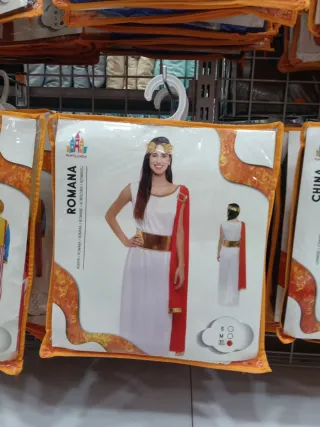 Disfraz de romana de la marca Partilandia. Ideal para fiestas temáticas o disfraces. - Incluye diadema dorada. - Túnica blanca con detalles dorados. - Toga roja con borde dorado.