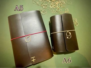 Set de fundas para libretas tipo Travelbook, en tamaños A5 y A6. Incluyen detalles dorados y elásticos de sujeción, libretas, iniciales grabadas A6 30€ A5 40€
