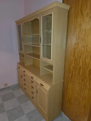 Mueble de madera con puerta de cristal. Se vende por mudanza está en perfecto estado Valorado en 1700€ en HIPERMUEBLE Tiene dos módulos la vitrina pequeña Y la grande con el centró un cajón y dos pequeños armarios Medidas exactas por privado - Diseño moderno y elegante. - Ideal para exhibir objetos decorativos.