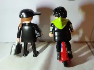 Set de figuras de Playmobil que incluye un agente de policía y un ladrón, junto con un patinete. - Figura de policía con uniforme y gorra. - Figura de ladrón con ropa casual. - Patinete de juguete con ruedas. Se envía por wallapop por Correos y inpost no utilizo la mensajería de GLS lo siento. #playmobil #jugueteria #figuras #muñecos #juguetes #tente #famobil #madelman #geobra #citylife #airgamboys