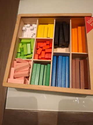 Caja de regletas de colores Goula, ideal para el aprendizaje matemático. - Contiene 300 piezas. - Incluye regletas de diferentes colores y tamaños. - Fabricado en madera.