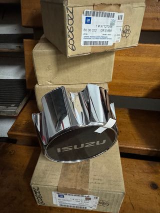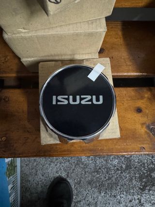 Juego de tapas para llantas de Isuzu originales. Dale un toque distintivo a tu vehículo. 5 unidades. - Diseño redondo. - Acabado en negro con borde cromado. - Logo de Isuzu en blanco.