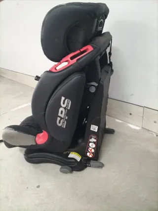 Sillita de coche SPS THUNDER con diseño acolchado en negro y detalles en rojo. - Acolchado en asiento y reposacabezas. Dispongo de acolchado extra para bebés. - Sistema de arnés de 5 puntos. - Funda extraíble para limpieza. - Sistema de sijección ISOFIX. - Varios detalles superficiales del uso, funciona perfectamente. - Desde 6 meses de edad hasta 36kg.