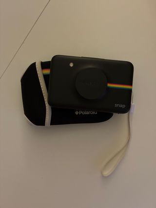Cámara instantánea Polaroid Snap en color negro, con un diseño moderno y compacto. Incluye una funda protectora. - Cámara digital instantánea. - Diseño con detalles de arcoíris. - Incluye funda de transporte.