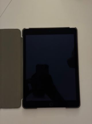 iPad de 7ª generación en color plata, incluye funda. - Pantalla Retina de 10.2 pulgadas. - Chip A10 Fusion. - Cámara trasera de 8 MP. - Compatible con Apple Pencil (1ª gen) y Smart Keyboard.