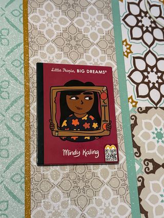 Libro sin abrir (en su caja) de McDonald de la coleccion Little People Big Dreams de la biografia de Mindy Kaling. McDo biografia infantil niños literatura primaria