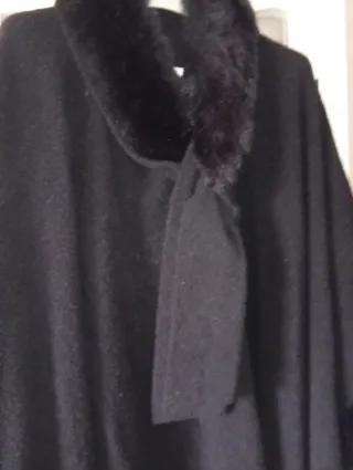 Elegante capa negra con un diseño sofisticado. - Cierre con botones. - Cuello y puños adornados con pelo sintético.