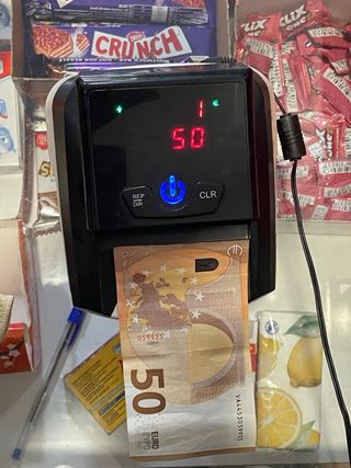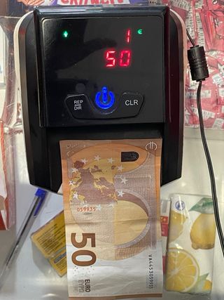 Máquina detectora de billetes falsos, ideal para comercios. Detecta billetes de 50 euros. - Pantalla digital. - Botones de control.