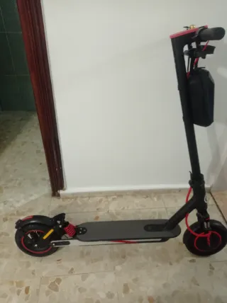 Patinete eléctrico de color gris. - Plataforma antideslizante. - Manillar ajustable. - Ruedas de goma.