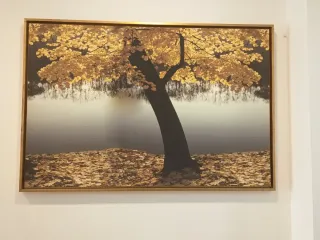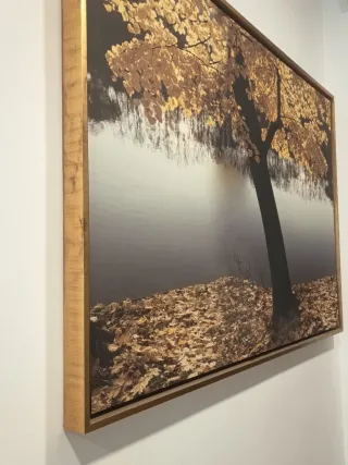 Cuadro decorativo con un diseño abstracto y moderno. Sus tonos plateados y blancos le dan un toque elegante. - Textura con relieve. - Detalles lineales y puntos brillantes.