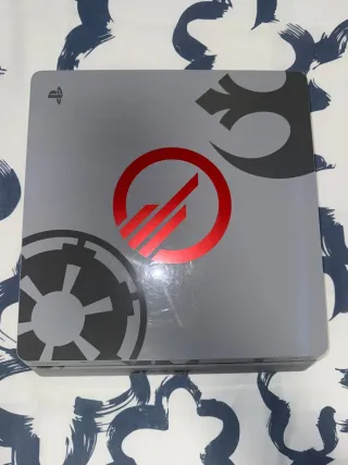 Consola PlayStation 4 edicion limitada con un diseño especial inspirado en Star Wars 1TB DE ALMACENAMIENTO EN PERFECTO ESTADO FUNCIONA INCREÍBLE MUY BIEN CUIDADA SE VENDE POR NO USAR Acabado en color gris. Diseño con motivos de Star Wars.