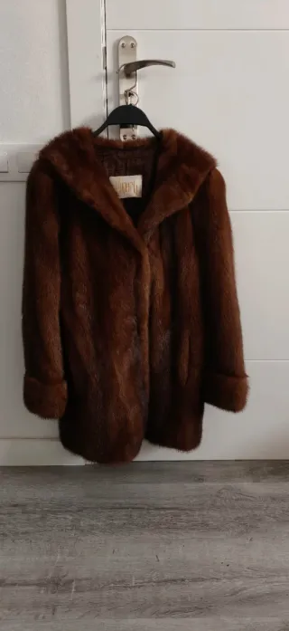 Abrigo de pelo marrón con capucha