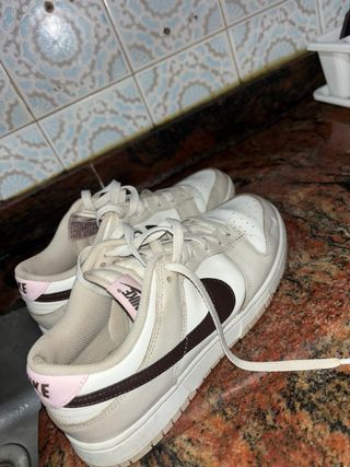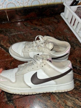 Tenis Nike en excelente estado, usados solo un par de veces. - Diseño en color beige con detalles en rosa. - Talla 40.