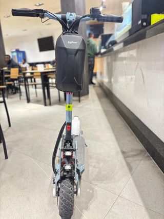 Patinete eléctrico Ecoxtrem en perfecto estado. - Diseño moderno y ligero. - Ruedas todoterreno para mayor agarre. - Bolsa de transporte frontal incluida.