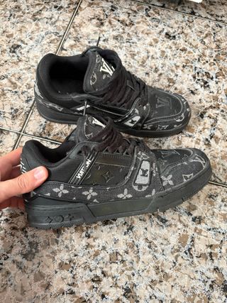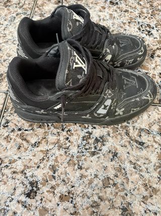 Zapatillas de diseño con el icónico monograma de Louis Vuitton. - Estampado LV en negro y gris. - Detalle de logo en la lengüeta y el lateral. - Suela de goma negra.