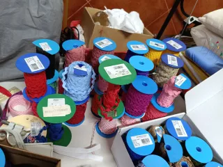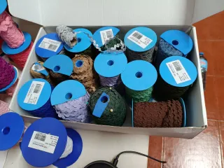 Se vende lote de piculinas u ondulinas, ideales para manualidades y costura. - Variedad de colores. - Varios rollos de diferentes tamaños. - Unos enteros y a otros le faltan unos metros 54 rollos en total