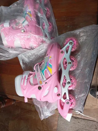 Patines para niña en color rosa, sin estrenar. Ajustables para tallas de la 38 a la 42. - Diseño moderno y llamativo. - Ruedas de alta resistencia.