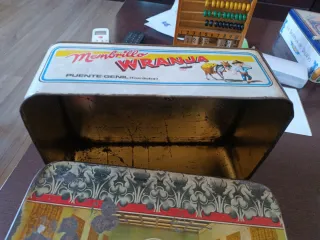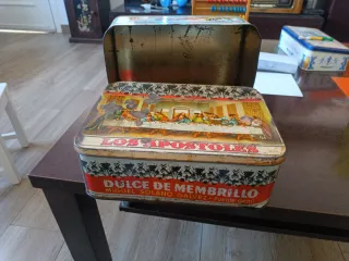 Bonita lata antigua de dulce de membrillo La otra caja bien conservada pero sin tapa. - Ilustración de Los Apóstoles en la tapa. - Diseño con motivos decorativos. - Marca: DULCE DE MEMBRILLO MIGUEL SOLANO GALVEZ - Puente Genil.