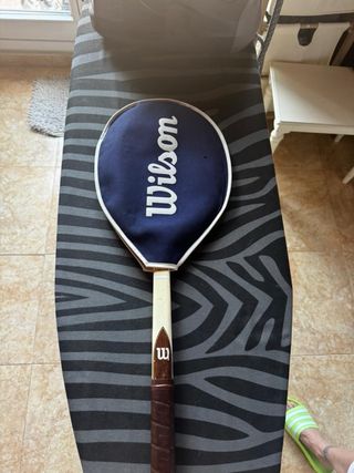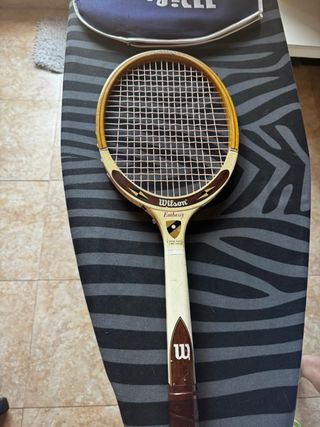 Raqueta de tenis Wilson Embassy, un modelo clásico para coleccionistas o jugadores que buscan un estilo vintage. - Marco de madera y detalles en color crema. - Cuerdas en buen estado. - Logo de Wilson en el puño.