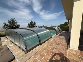 Magnífica vivienda unifamiliar independiente de dos plantas, con 150 m² construidos y 140 m² útiles, ubicada en una amplia finca privada de 1.800 m², que ofrece vistas impresionantes, total privacidad, comodidad y excelentes calidades. Se encuentra a tan solo 30 minutos de la capital, ideal para quienes buscan tranquilidad sin renunciar a una buena conexión. La propiedad cuenta con 3 dormitorios y 2 baños, además de un gran garaje privado cubierto de 40 m² con puerta eléctrica. El exterior es uno de sus grandes atractivos: piscina privada cubierta y climatizada con sistema de agua salada, jacuzzi, sauna, jardín con árboles consolidados y puerta automática de acceso a la finca, todo ello en un entorno íntimo y exclusivo. La planta principal está distribuida en: Cocina totalmente equipada con electrodomésticos. Comedor con salida directa a la zona de piscina. Amplio salón de 25 m², dividido en dos ambientes: Zona de descanso con sofá, chimenea y televisión. Zona de lectura con agradables vistas abiertas al jardín y al entorno natural. La vivienda destaca por su preciosa decoración en piedra y madera, que aporta calidez y personalidad. La zona de descanso dispone de 3 amplias habitaciones: Dormitorio principal con baño en suite de 6 m², con ducha cerrada y ventana. Dos dormitorios dobles de 11 m² y 15 m², muy luminosos. Segundo baño completo, funcional y acogedor. La planta inferior: Alberga una gran bodega de 30 m², con entrada de luz natural y chimenea, ideal como zona de eventos, ocio, relax o almacenaje. Desde la bodega se accede a un trastero de 12 m², donde se encuentran las calderas eléctrica y de gasoil, con depósito de 1.000 litros, que suministran calefacción a la vivienda y cuentan con acceso directo a la zona exterior. Calidades y equipamiento: Puertas de madera lacadas en blanco, suelo Pergo AC6, resistente al agua hasta 72 horas, ventanas Climalit oscilobatientes de madera con cámara térmica, split de aire acondicionado en el salón, sistema d