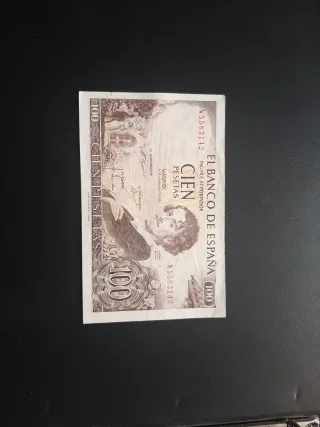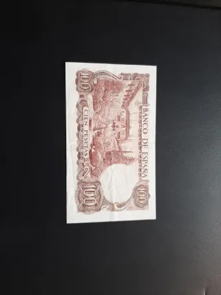 Billete de España circulado pero en buen estado de 100 pesetas de 1965 con serie W. Posibilidad de envío ordinario bajo responsabilidad del comprador. Crea tu lote o anuncio con los billetes que quieras.