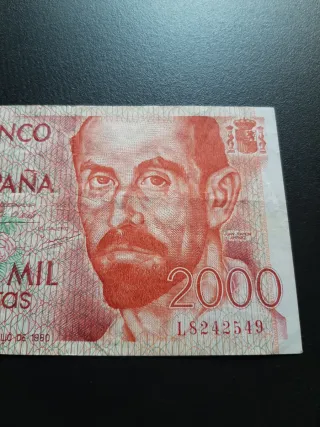 Billete de España circulado de 2000 pesetas de 1980 con serie L. Posibilidad de envío ordinario bajo responsabilidad del comprador. Crea tu lote o anuncio con los billetes que quieras.