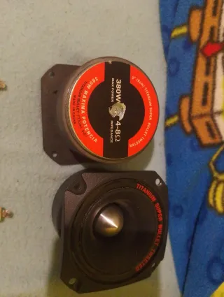 Par de tweeters Super Bullet Titanium. - Potencia de 380W. - Diseño tipo bala. 🔴Las bobinas están quemadas las Dos🔴 Oportunidad de reparar cambiando la bobina me costaron los Dos 40€ nuevos por Amazon son de car audio de 380w 4-8Ω con condensador de 100v 3.3uf