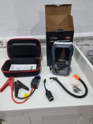 Vendo arrancador YaberAuto 6000A, en estado impecable (solo probado). Funciona perfecto. Lo vendo por tener otro más potente. 🔥 Súper completo: 🔋 23800 mAh 🚗 Arranca gasolina y diésel (hasta 10.0L) 🌬️ Compresor de aire 150 PSI 🔦 Linterna LED 📟 Pantalla digital 🔌 Powerbank (USB) 🎒 Con funda y todos los accesorios 💸 PRECIO: 50€ (chollo, nuevo cuesta bastante más) ⏱️ No reservo. El primero que venga se lo lleva. 📦 Entrega en mano o envío.