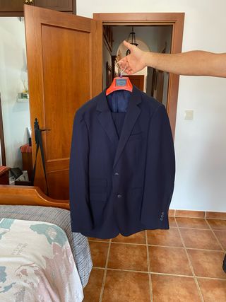 Conjunto de traje para hombre, compuesto por chaqueta y pantalón. - Chaqueta de corte clásico. - Pantalón a juego. Nuevo, solo se ha utilizado una vez. Talla: la que aparece en la imagen. Idóneo para eventos