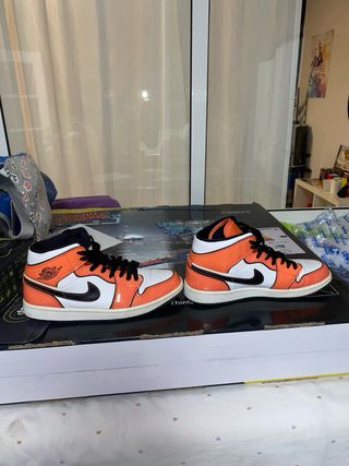 Zapatillas de caña alta con un llamativo diseño. - Acabado brillante en color naranja. - Detalles en blanco y negro. - Cordones negros. Usada menos de 5 veces. Originales (puede comprobarse en la imagen del pedido)