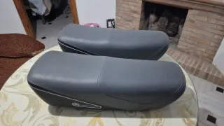 Se venden dos asientos para Vespa F9 en color gris. Están en buen estado. - Diseño con líneas blancas. - Logo de Vespa en relieve.